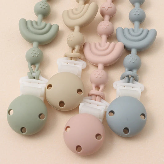 Clipe de chupeta em silicone – design arco-íris com relevo sensorial