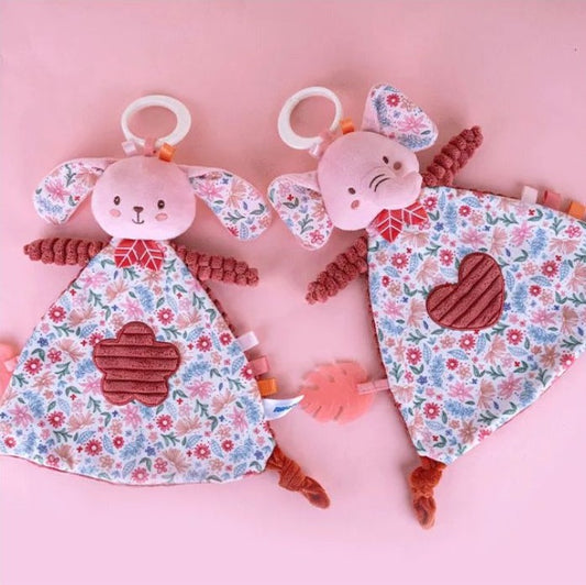 Doudou de Algodão com Orelhas de Coelho e Mordedor de Madeira