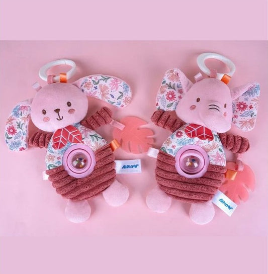Brinquedos penduráveis para carrinho e berço - animais em peluche com chocalho