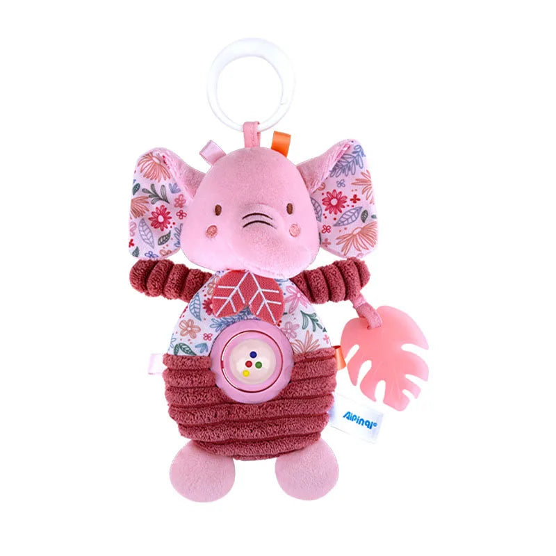 Este elefante encantador da coleção Bloomies combina música suave, mordedor e texturas estimulantes num só brinquedo. Ideal para acompanhar o bebé nos primeiros meses, pode ser pendurado no carrinho, berço ou ginásio, proporcionando conforto e diversão em qualquer lugar.