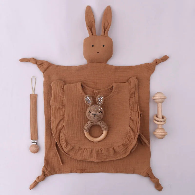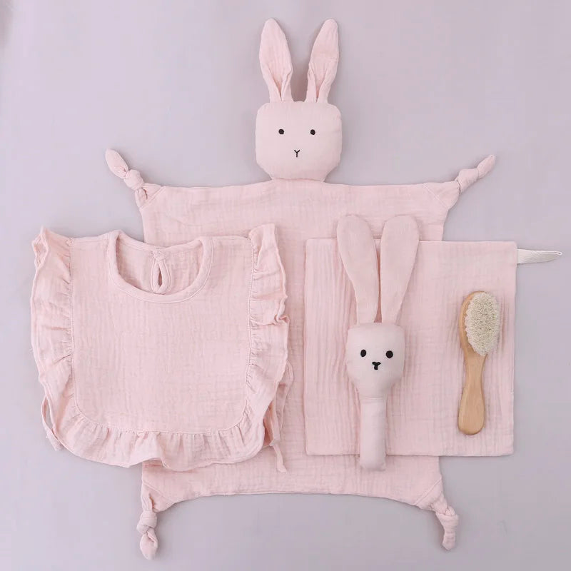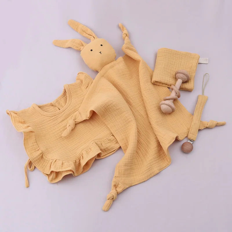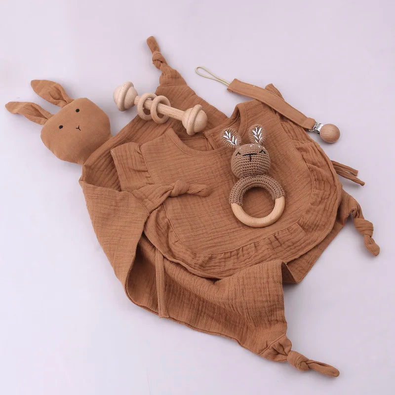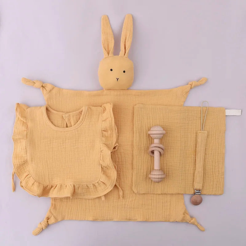 A Box My Little Nest – foi pensada para envolver o teu bebé num ninho de conforto, suavidade e encanto. Com uma paleta neutra e elegante, este kit inclui tudo o que é essencial nos primeiros dias: babete com folhos, doudou, mordedor artesanal, escova de cerdas naturais e muselina.