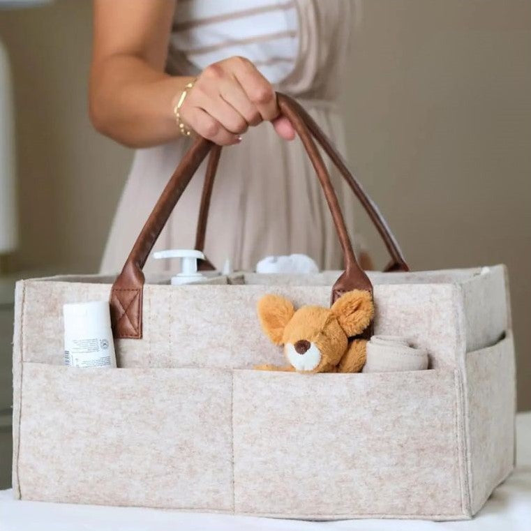 O cesto organizador “Mimo” é o aliado perfeito para manter tudo o que precisas ao alcance — fraldas, toalhitas, cremes e brinquedos. Com divisórias práticas e alças resistentes, é ideal para usar em casa ou transportar em viagens com o bebé.