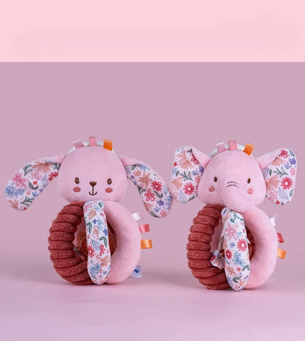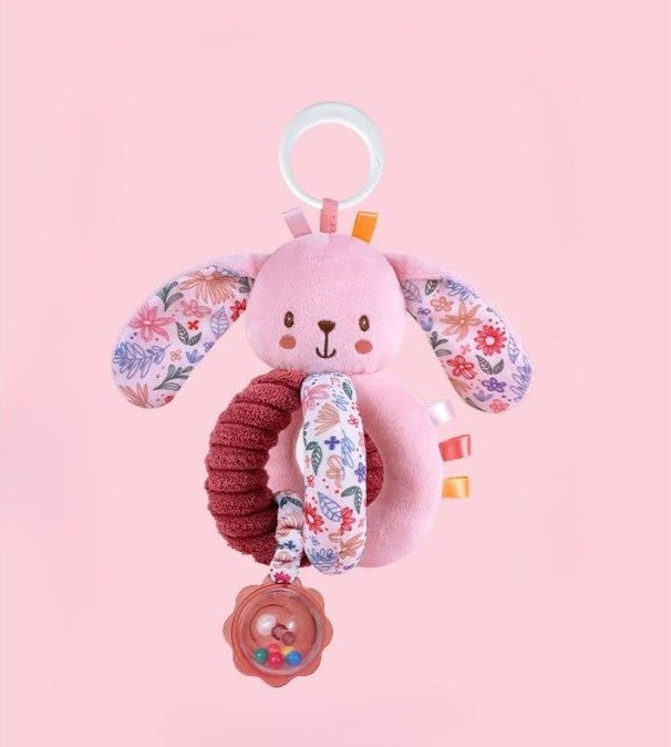 Esta coelhinha adorável da coleção Bloomies é mais do que um simples chocalho. Com o seu design ergonómico, tecido suave e argola com bolinhas coloridas, foi pensado para estimular os sentidos do bebé e proporcionar momentos de diversão segura. Ideal para pendurar no carrinho ou levar na mão.