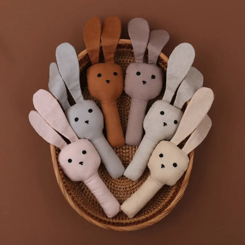 Chocalho de Coelho em Tecido - Companheiro Suave para os Primeiros Sons do Bebé