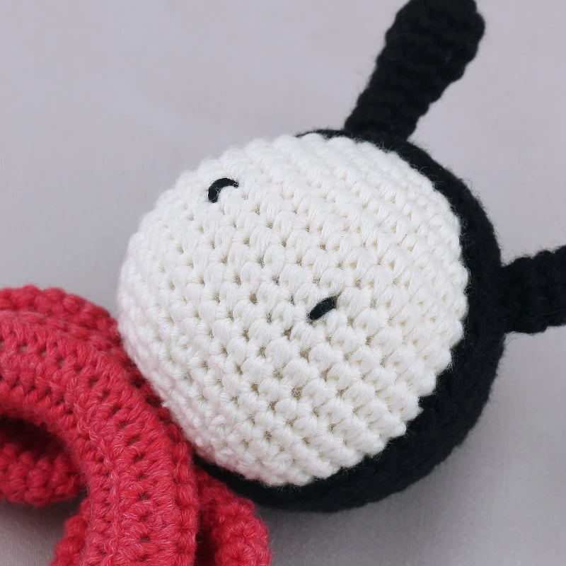 Este chocalho de croché em forma de joaninha é o companheiro perfeito para os primeiros meses do bebé. Com um design adorável e artesanal, combina textura suave, som leve e materiais naturais para estimular os sentidos de forma segura e divertida. Ideal para entreter, acalmar e acompanhar o desenvolvimento do seu bebé.