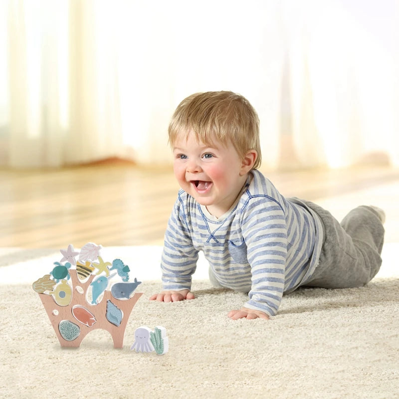 Um brinquedo educativo encantador com tema marinho, perfeito para desenvolver a motricidade, imaginação e curiosidade dos mais pequenos. Feito em madeira natural e com um design adorável, é também uma peça decorativa para o quarto.