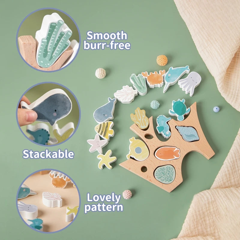 Jogo de empilhamento em madeira – Ocean Friends Montessori