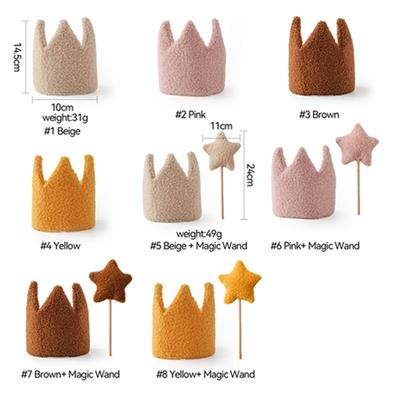 Coroa em tecido felpudo confortável, ajustável à cabeça do bebé.