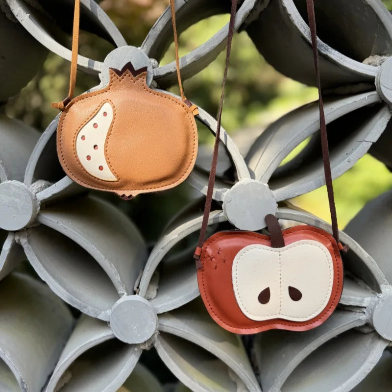 Estas mini bolsas em forma de maçã e romã são perfeitas para meninos e meninas pequenos que adoram acessórios com personalidade! Com um design divertido inspirado em frutas e alça ajustável, são ideais para os primeiros passeios, festas ou para guardar pequenos objetos do dia a dia.