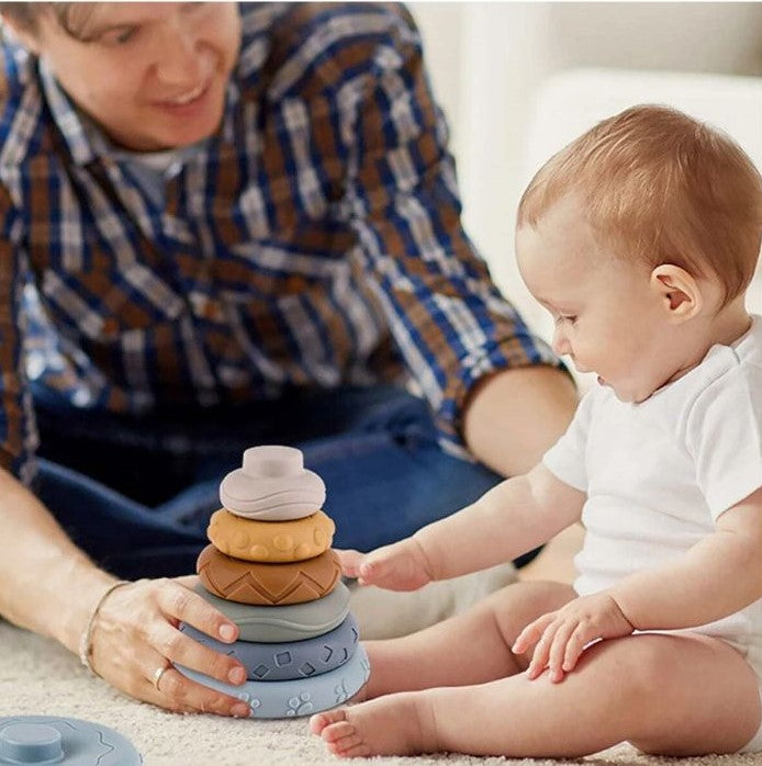Aprender com as mãos e com o coração! Esta torre de empilhamento em silicone com topo de koala foi desenhada para estimular o desenvolvimento sensorial e motor dos bebés desde os primeiros meses de vida.