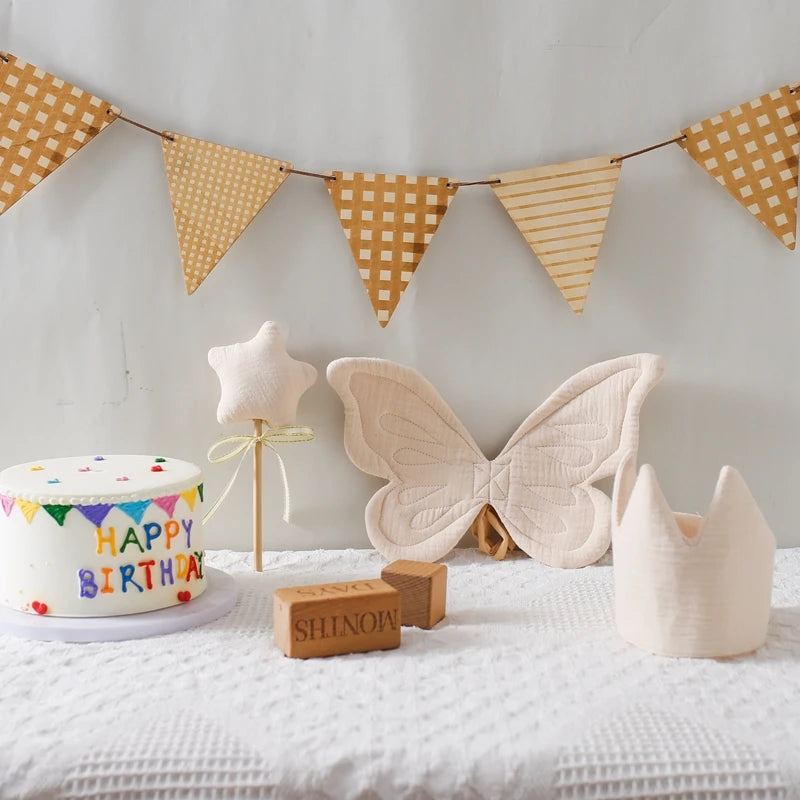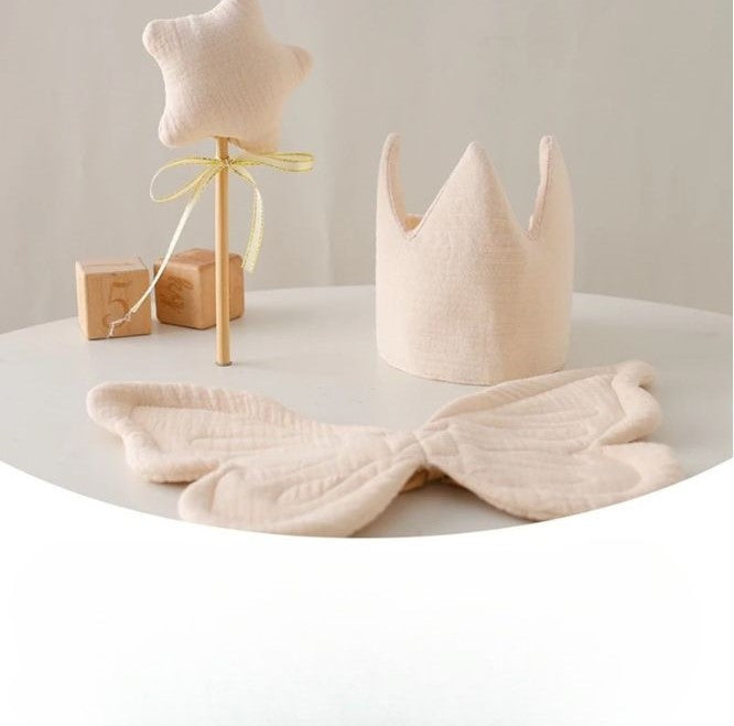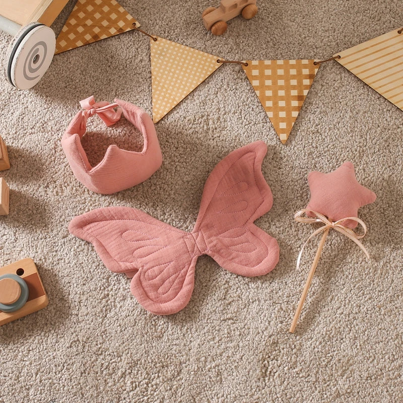 Celebra momentos mágicos com este adorável conjunto de asas de borboleta, coroa e varinha mágica, perfeito para aniversários, sessões fotográficas e brincadeiras cheias de imaginação. Com design delicado e materiais suaves ao toque, é ideal para proporcionar conforto e encanto nos primeiros anos da infância.